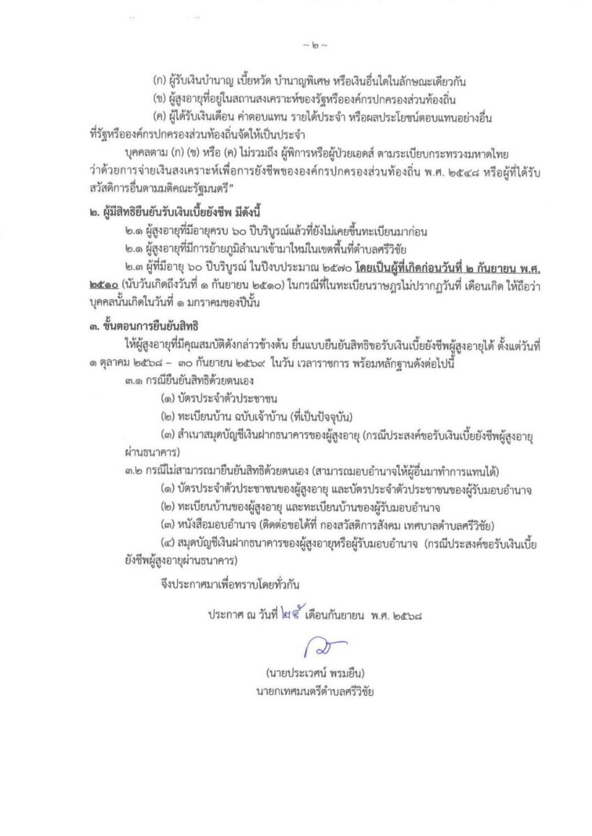 ประกาศการรับยืนยันสิทธิรับเงินเบี้ยยังชีพผู้สูงอายุ