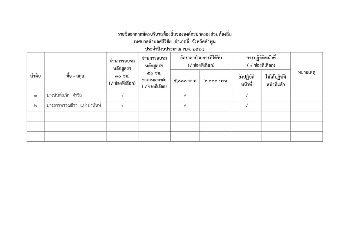 กองสาธารณสุขและสิ่งแวดล้อม รายชื่ออาสาสมัครบริบาลท้องถิ่นเทศบาลตำบลศรีวิชัย ประจำปีงบประมาณ พ.ศ.2567 1 ต.ค. 2024 0 Sriwichai-edit รายชื่ออาสาสมัครบริบาลท้องถิ่นเทศบาลตำบลศรีวิชัย ประจำปีงบประมาณ พ.ศ.2568 ดูเพิ่มเติม